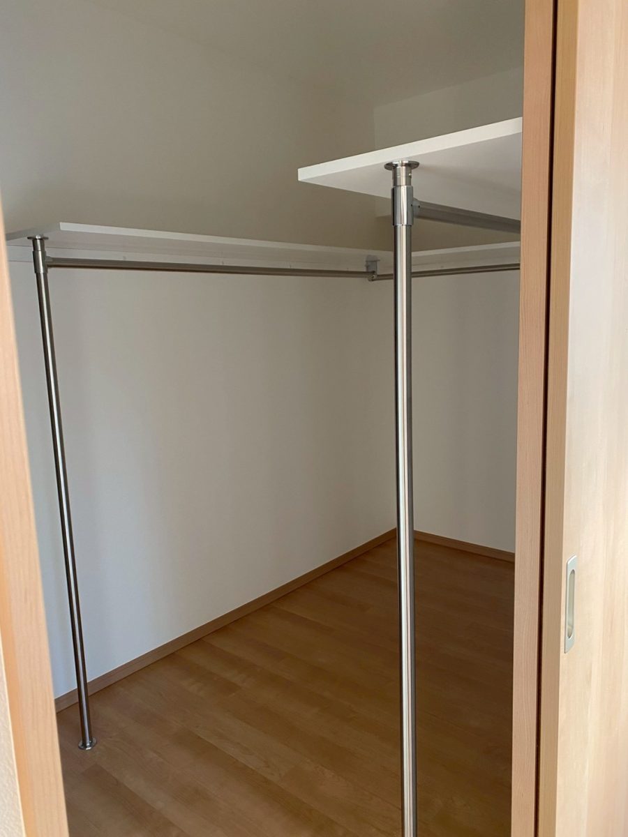 クローゼット内はハンガーポールと上部棚でたっぷり収納を確保しました。